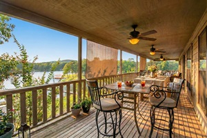 Terrain Note: The backyard is hilly. While the house and upper deck/hot tub are easily accessible, getting to the lake, dock, and outdoor kitchen requires walking down a series of stairs.